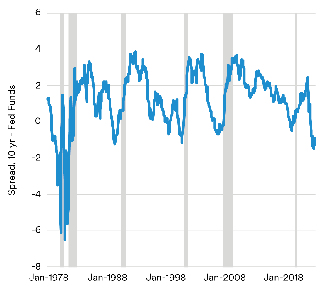 The 10-year treasury yield rose substantially in October, touching a high of 4.8% in the first week of the month. The increase has come almost entirely from real rates, as inflation expectations as seen in the 5-year, 5-year forward inflation expectations have increased only marginally. This appears to be partly due to adjusted expectations about how long the FOMC will maintain current Fed Funds levels and about how long quantitative tightening will last. We expect some of these impulses to fade toward year end as anticipated economic weakness comes to the foreground and inflation falls further. We also flag the changing structure of the yield curve. After a long period of inverted yield curves, we are seeing a steepening of the yield curve closer to positive. While inversions are commonly cited as leading indicators of a recession, in the last four recessions the yield curve normalized slightly before or coincident to the onset of the recession. If the pace of this shift continues as it has the last few months, the spread may be normalized by the first half of 2024, when we anticipate the recession will begin.
