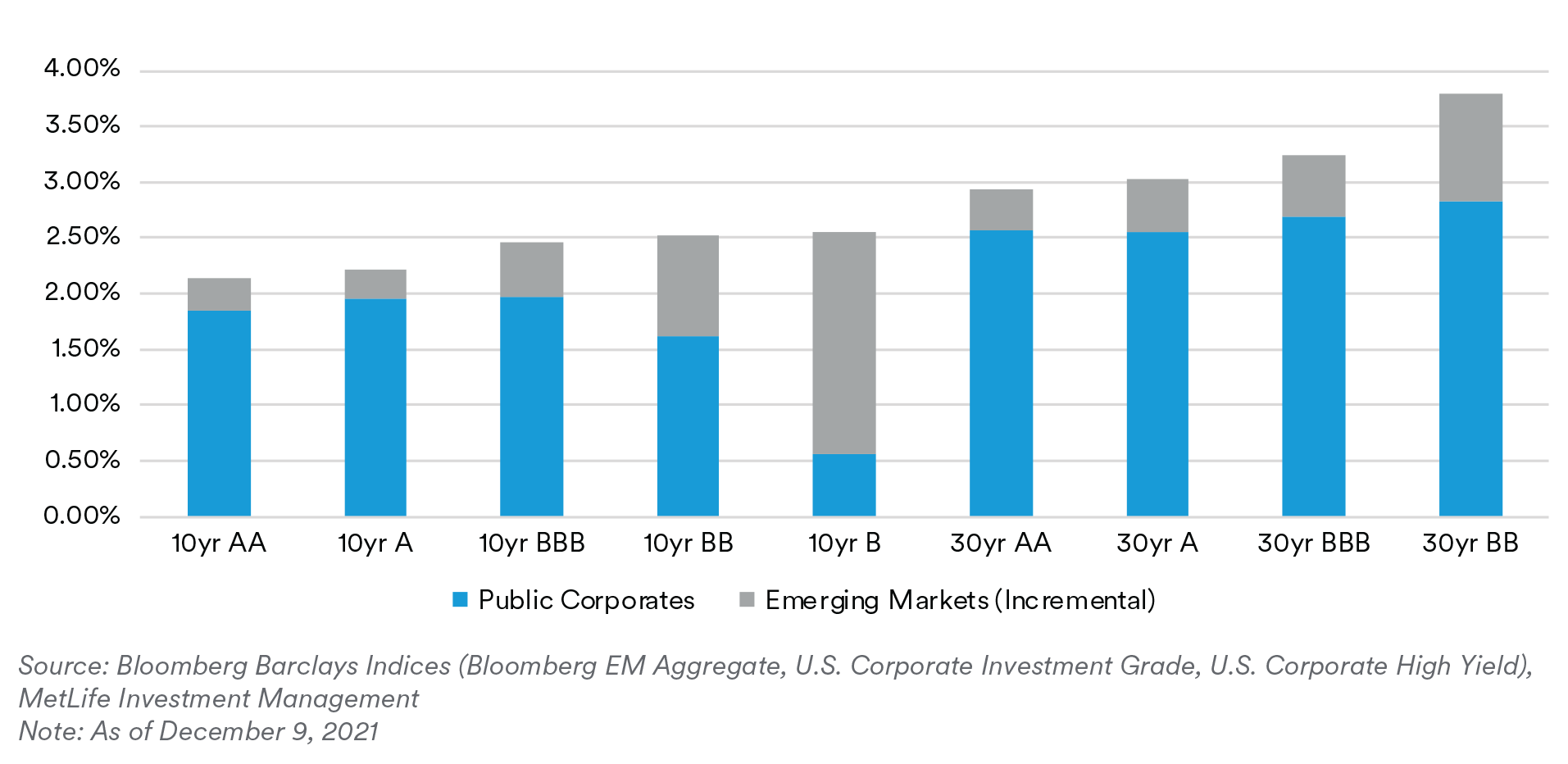 In the U.S. this document is communicated by MetLife Investment Management, LLC (MIM, LLC), a U.S. Securities Exchange Commission registered investment adviser. MIM, LLC is a subsidiary of MetLife, Inc. and part of MetLife Investment Management. Registration with the SEC does not imply a certain level of skill or that the SEC has endorsed the investment advisor. This document is being distributed by MetLife Investment Management Limited (“MIML”), authorised and regulated by the UK Financial Conduct Authority (FCA reference number 623761), registered address Level 34 One Canada Square London E14 5AA United Kingdom. This document is approved by MIML as a financial promotion for distribution in the UK. This document is only intended for, and may only be distributed to, investors in the UK and EEA who qualify as a “professional client” as defined under the Markets in Financial Instruments Directive (2014/65/EU), as implemented in the relevant EEA jurisdiction, and the retained EU law version of the same in the UK.