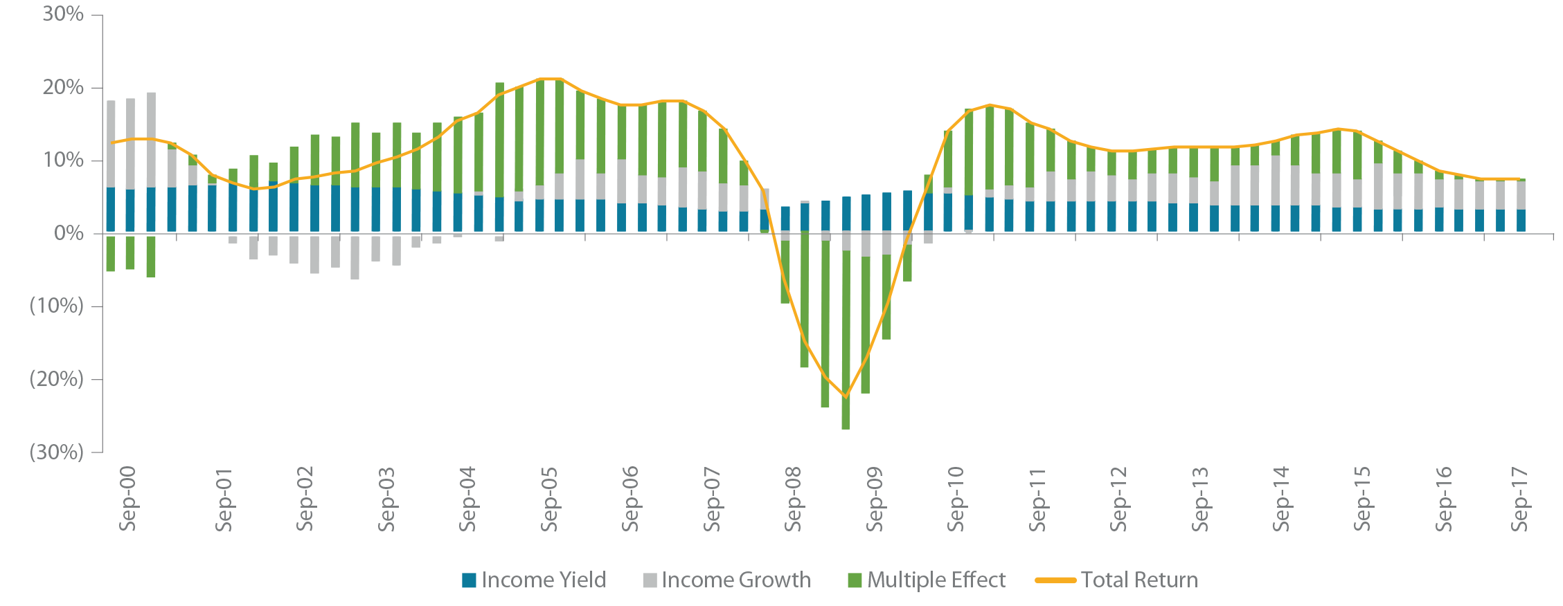 Source: BlackRock, NCREIF, December 2017, NCREIF Property Index.