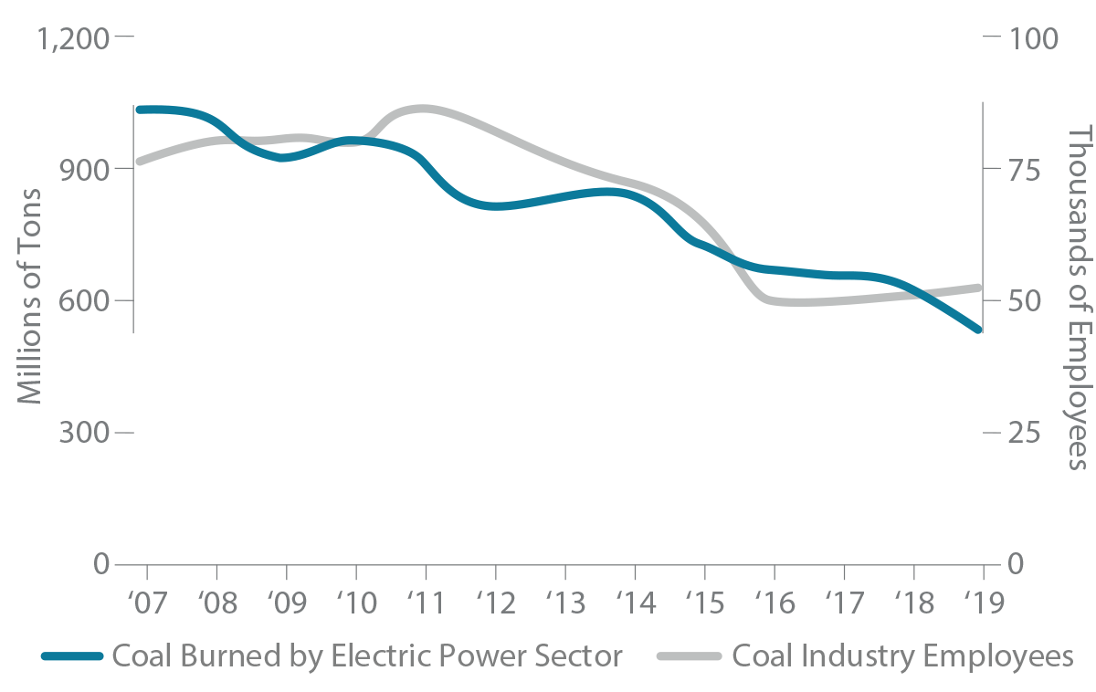 7 To be fair, automation also played a role in job losses, and many of those who lost their jobs in coal found opportunities in shale gas.